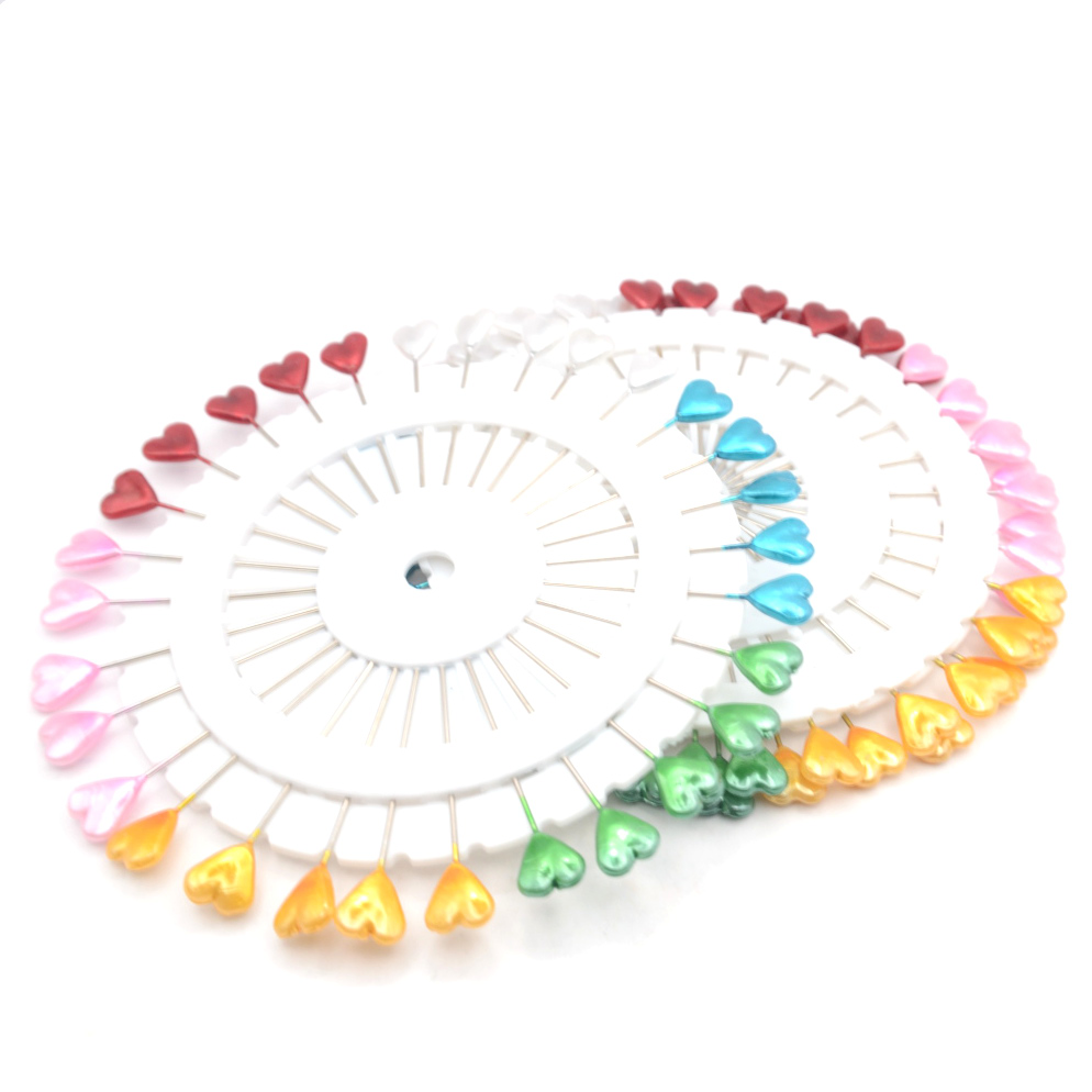 Heart shaped Pins with a Pin Wheel for safe storage – holds 30 pins. The heart shaped pins are made from alloy with a Nickel plating which helps keep the points sharp. Available in 6 pearlescent colours – Blue, Green, Pink, Red, White, Yellow and Assorted.